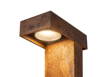 Přímo zaměřené stojací lampy řady RUSTY přesvědčí nezvyklým rezavým vzhledem. Tato se dosahuje pomocí speciální chemické úpravy používané oceli FeCSi. Tím je svítidlo unikátní a je absolutní zvláštností při každé instalaci. Díky krytí IP55 je vhodné pro venkovní oblast. Volitelně jsou trn do země i spojovací box k bezpečnému elektrickému připojení k dispozici s kruhovým sloupkem svítidla. Svítidlo osazené výkonnou LED se připojuje přímo k síťovému napětí 230 V.