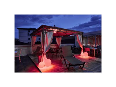 ROTOBALL FLOOR 25 je řešení k decentnímu osvětlení venkovní oblasti. Ať už jde o předzahrádku, terasu nebo zahradu, toto kulaté svítidlo zajistí příjemnou atmosféru při soumraku nebo pozdě večer. Umístíte-li několik svítidel ROTOBOOLL ve venkovní oblasti, nastane ve vaší zahradě opravdový světelný ráj. U venkovního svítidla se jedná o translokovaný, přenosný světelný objekt s uzavřeným, robustním stínidlem světa z opálového plastu. Díky krytí IP44 i síťovému kabelu včetně síťového konektoru lze svítidlo použít téměř na každém místě, a tím upoutá pozornost v každé zahradě.