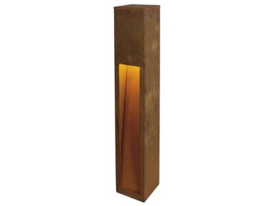 Nepřímo zaměřené stojací lampy řady RUSTY SLOT přesvědčí nezvyklým rezavým vzhledem. Tato se dosahuje pomocí speciální chemické úpravy používané oceli FeCSi. Tím je svítidlo unikátní a je absolutní zvláštností při každé instalaci. Díky krytí IP44 je vhodná pro venkovní oblast. Volitelně jsou bodec i spojovací box k bezpečnému elektrickému připojení k dispozici v kruhovém sloupku svítidla. Připojení dvou verzí, které jsou k dispozici, se provádí vždy k síťovému napětí 230 V.