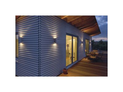 Nástěnné svítidlo řady THEO je zhotovené z hliníku a skla, které zakrývá světelný zdroj. Zásluhou polohy dvou zabudovaných objímek generuje namontované svítidlo dva identické, ale protilehlé světelné kužely (UP/DOWN). Díky stupni krytí IP44 je vhodné pro použití ve venkovní oblasti. Elektrické připojení svítidla dostupného ve třech barevných variantách proveďte přímo na síťové napětí 230 V. Řada THEO zahrnuje také stropní svítidla, a nabízí proto univerzální použití.