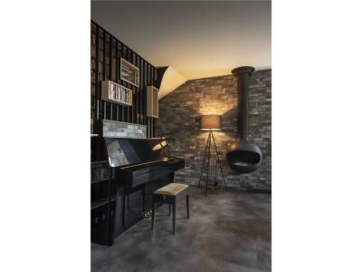 Stojací lampa FENDA v chromu a černé z našeho systému svítidel MIX & MATCH umožňuje individuální složení se stínítky svítidla FENDA.