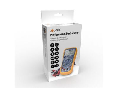 Digitální multimetr pro měření proudu, napětí, odporu, frekvence, kapacity a teploty. Nabízí true RMS měření (efektivní hodnota střídavých průběhů), tranzistorový a diodový test, test spojitosti obvodu, a měření parametrů hFE. Automatické vypnutí a uchování poslední hodnoty. Ochrana proti přetížení s elektronickou pojistkou. Napájení: 9V baterie. Rozsahy: DCV (200mV - 600V), ACV (2V - 600V), DCA (200µA - 20A), OHM (200Ω - 20MΩ), kapacita (20nF - 20mF), teplota (-40°C - 1000°C). Rozměry: 189 x 89 x 55 mm.
