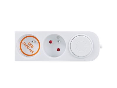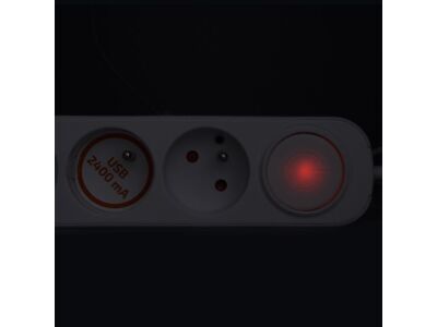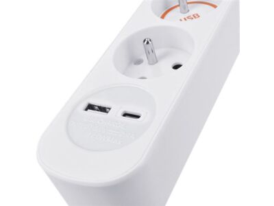 Solight Prodlužovací přívod 2m, 3 x 1 mm² s USB A+C nabíječkou 2.4A, bílý, vypínač