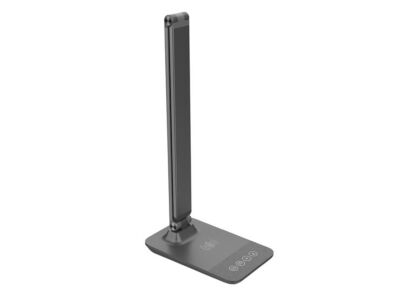 Prémiová hliníková stolní LED lampička s integrovaným bezdrátovým nabíjením přináší nejen stylové, ale i vysoce funkční osvětlení. Podporuje nabíjení chytrých telefonů pomocí Qi technologie (max. 5W) a nabízí také USB port (5V/1A) pro kabelové dobíjení. Ideální pro moderní pracovní stůl.