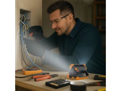 Dobíjení baterie probíhá přes moderní USB-C konektor a trvá přibližně 4 hodiny. Reflektor má stupeň krytí IP54, takže je chráněn proti stříkající vodě a prachu, což jej předurčuje k venkovnímu použití. Světelný kužel o šíři 120° zajistí dostatečné pokrytí plochy. Odolné tělo z ABS a PC plastu v kombinaci s kompaktními rozměry (14 × 10 × 4,5 cm) a barevným provedením v oranžovo-černé barvě dělá z tohoto modelu ideální volbu pro kempování, opravy i nouzové situace.