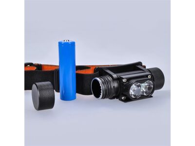 - nabíjecí LED čelová svítilna s vysokým světelným tokem a dvěmi výkonnými XPG LED diodami