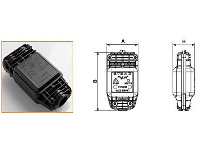 Spojka gelová PAGURO 5697/5 IP68, se svorkou 5x1,5mm2. Vnější průměr kabelu (min. - max.) 6,5 - 12 mm. Odbočné spojení (tvar Y), 250V/10A, rozměry: 43 x 90 x 30 mm.