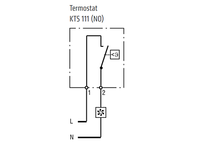 Mechanický termostat KTS 111 (se spínacím kontaktem NC) je určený pro spínání topných těles v okamžiku, kdy teplota uvnitř rozváděčové skříně klesne pod nastavenou hodnotu.