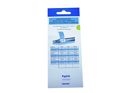 Samolepicí popisovače kabelů pro jednoduché, rychlé a trvalé označení kabelů. Značkovače kabelů pro jednoduché, rychlé a trvalé označení kabelů. čirá PV 006, samolepicí fólie z měkčeného PVC, tloušťka 0,08 mm. Chrání popisovací pole před mechanickými vlivy. Značkovač se skládá z patentované a průhledné lisovací části, bílého popisovacího pole, průhledné ochranné části, teplotní odolnost od 30 °C do +120 °C, trvalá lepicí síla, vysoká odolnost proti UV záření. Odolný vůči nečistotám, vodě, alkoholu a olejům na bázi ropy. Lze označovat tužkou, biroskopy, tiskárnou apod. Kapesní balení. Provedení: List: 25x24 mm; maximální Ø kabelu 14 mm; počet kusů v bloku: 21; délka: 80 mm; PU: 1.