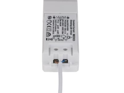 Regulovatelný SELV zdroj konstantního proudu k LED svítidlům, fázově řiditelný externím stmívačem s regulací na náběžné hraně (leading edge LE) nebo sestupné hraně (trailing edge TE). Maximální výkon 9W, PF min 0,9, vstupní napětí AC 220-240V 50/60Hz, výstupní napětí DC 15-30V, výstupní proud 300mA. Rozměry 110x40x22mm, IP20, materiál plast. Zdroj disponuje integrovanou ochranou proti zkratu, přetížení i přehřátí.