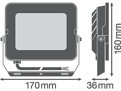 Reflektor se světelným výkonem až 5 000 lm. Vlastnosti výrobku: Symetrické vyzařování na základě technologie reflektorů s úhlem vyzařování 100° × 100°. Montážní konzola s 30° úhlem a širokou rotační plochou. Předinstalovaný flexibilní 1m kabel (H05RN-F), 3 × 1,0 mm² jednotlivé vodiče, obalené. Výhody výrobku: Robustní, přesto lehký a kompaktní design. Bezpečné a velmi rovnoměrné osvětlení díky difuzoru s matným a tvrzeným sklem. Nulová hodnota horní účinnosti svítidla (ULOR 0 %) při montáži v náklonu 0°. Úspora energie až 90 % ve srovnání s halogenovými reflektory. 3letá záruka. Oblasti použití: Náhrada za reflektory s halogenovými žárovkami. Venkovní použití (IP66). Veřejné prostory. Fasády budov. Zahrady, balkony a další venkovní prostory. Stavební plochy. Bezpečnostní informace: Externí flexibilní kabel tohoto svítidla nelze vyměnit. Pokud je kabel poškozen, je nutné svítidlo vyřadit z provozu a zlikvidovat ho.. Svorkovnice není součástí dodávky. Instalaci musí provést kvalifikovaná osoba.. Pozor – nebezpečí úrazu elektrickým proudem.. Výrobek v třídě ochrany I. Všechny elektricky vodivé, kovové části pouzdra, které mohou během provozu nebo údržby v případě poruchy absorbovat napětí, musí být trvale připojeny k ochrannému zemnicímu vodiči..