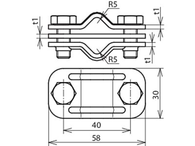 Zkušební svorka UNI podle ČSN EN 62561-1, pro spojení svodu s vývodem z uzemnění. Provedení s mezidestičkou pro dva kruhové vodiče.