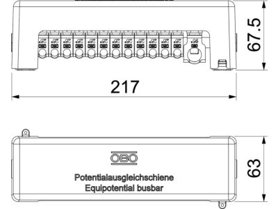 OBO BETTERMANN Přípojnice potenciálového vyrovnání, 217mm, šedá Mosaz, CuZn typ 1801 12x25 1x95