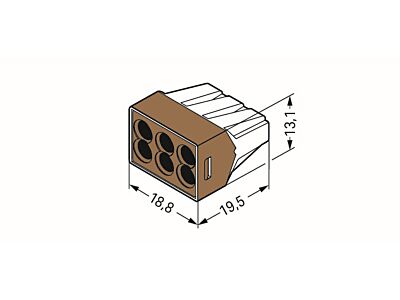 Instalační svorka PUSH WIRE®; Pro plné vodiče; Max. 4 mm²; 6 vodičů; Barva pouzdra hnědá – transparentní; Barva krytu hnědá; Max. teplota okolního prostředí 60 °C; 2,50 mm²; Vícebarevné