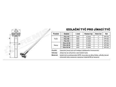 TREMIS Tyč ITJc 43 izolační pro jímací tyč L=430mm, materiál:Nerez/GFK