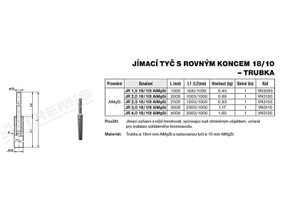 jímací tyč s rovným koncem 18/10-trubka