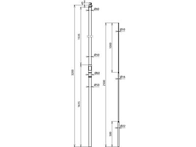 Podpůrná trubka GFK/Al s vnitřním připojením a pružinovou PA svorkou, pro vodiče HVI-long, s krátkou jímací tyčí, pro instalaci oddálených (izolovaných) jímacích soustav. Systém pro dodržení dostatečné vzdálenosti vůči elektrickým a vodivým částem podle ČSN EN 62305-3. Trubka D 50 mm z umělé hmoty vyztužené skleněnými vlákny (glasfaserverstärkte Kunststoff GFK), s UV odolností, barva světle šedá, koeficient materiálu km= 0,7. Jednodílné provedení, kombinované s hliníkovou jímací tyčí (D 22 / 16 / 10 mm, délka 2500 mm).