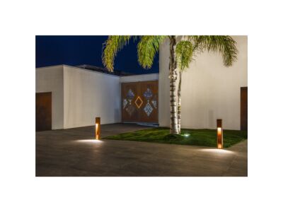 Přímo zaměřené stojací lampy řady RUSTY přesvědčí nezvyklým rezavým vzhledem. Tato se dosahuje pomocí speciální chemické úpravy používané oceli FeCSi. Tím je svítidlo unikátní a je absolutní zvláštností při každé instalaci. Díky krytí IP55 je vhodné pro venkovní oblast. Volitelně jsou bodec i spojovací box k bezpečnému elektrickému připojení k dispozici s kruhovým sloupkem svítidla. Elektrické připojení vysoce výkonného svítidla s integrovanými COB LED se realizuje vždy se síťovým napětím 230V.