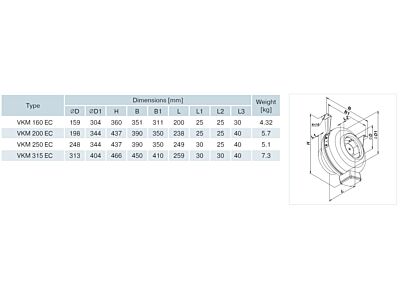 Potrubní kovový radiální ventilátor Vents VKM EC je určen pro použití ve veřejných prostorách jako jsou banky, supermarkety, hotely, ale i domácnosti nebo kryté bazény. Díky kovovému krytu lze ventilátor použít i ve venkovních prostorách. Kryt ventilátoru je kovový a je potažen polymerovou ochrannou vrstvou. Krabička se svorkovnicí je upevněna na vnější straně krytu. Díky úspornému motoru je spotřeba elektrické energie snížena oproti běžným typům ventilátorů o 35 %. Vyvážená vrtule se zpětně zahnutými listy je poháněna jednofázovým úsporným elektronicky komutovaným EC motorem. Tento motor je v dnešní době nejpokročilejším řešením pro maximální úspornou elektrické energie a účinností dosahující až 90 %. Plynulé ovládání rychlosti je možné pomocí regulátoru otáček. Výhodou EC motorů je plynulý chod v celém rozsahu nastavení otáček. Součástí balení je i montážní konzole. Recyklační poplatek je zahrnut v ceně výrobku. UPOZORNĚNÍ: Pro správnou funci ventilátoru je potřeba připojit speciální regulátor otáček. Doporučujeme typ R-1/010 (obj.č. 1099098) - není součástí balení.