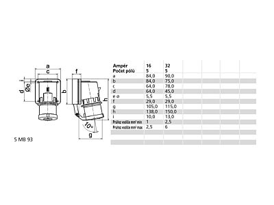 16A 5p (3P+N+PE) 400V (200/346 do 240/415V~) 6h IP44