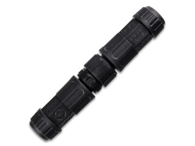 Pár vidlice + zásuvka, IP67, pájecí, pozlacené kontakty, M16, 5pinů - například pro RGB+W LED pásky. Průřez připájitelného kabelu max. 0,75mm², průměr kabelu 7,5-9mm, max. 5A/110V. Rozměry: 111x21,2mm.