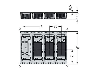 Svorka na desky plošných spojů THR; Tlačítko; 1,5 mm²; Rozteč 5 mm; 3pól.; Push-in CAGE CLAMP®; V pásu; Délka pájecích kontaktů 1,5 mm; Černá