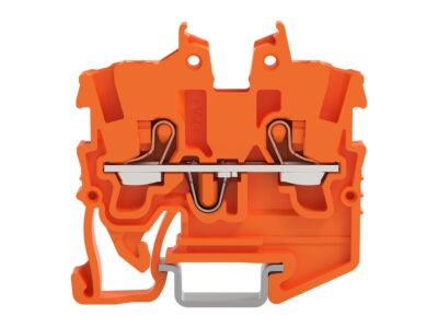 2vodičová průchozí svorka Mini; s ovládacím tlačítkem; 1 mm²; Na lištu DIN 15; Boční a středový popis; Se zkušebním otvorem; Push-in CAGE CLAMP®; 1,00 mm²; Oranžová