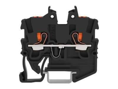 2vodičová průchozí svorka Mini; s ovládacím tlačítkem; 1 mm²; Na lištu DIN 15; Boční a středový popis; Se zkušebním otvorem; Push-in CAGE CLAMP®; 1,00 mm²; Černá
