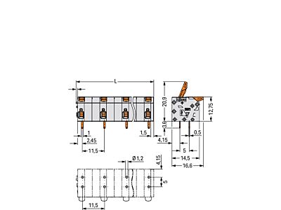 Svorka na desky plošných spojů; Páčka; 1,5 mm²; Rozteč 11,5 mm; 9pól.; Push-in CAGE CLAMP®; 1,50 mm²; Šedá