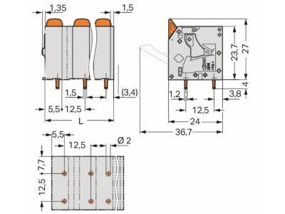 Svorka na desky plošných spojů; Páčka; 6 mm²; Rozteč 12,5 mm; 11pól.; Push-in CAGE CLAMP®; 6,00 mm²; Šedá