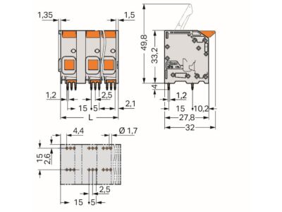 Svorka na desky plošných spojů; Páčka; 16 mm²; Rozteč 15 mm; 8pól.; Push-in CAGE CLAMP®; 16,00 mm²; Šedá