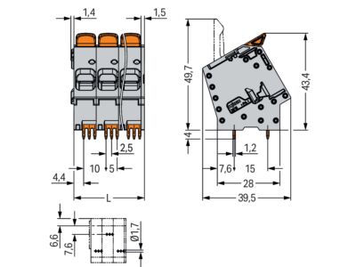 Svorka na desky plošných spojů; Páčka; 16 mm²; Rozteč 10 mm; 2pól.; Push-in CAGE CLAMP®; Šedá