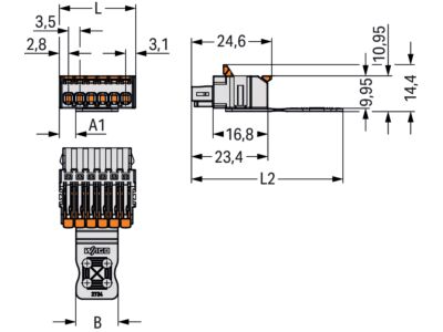 1vodičová pružinová svorkovnice; Páčka; Push-in CAGE CLAMP®; 1,5 mm²; Rozteč 3,5 mm; 3pól.; 100% ochrana proti chybnému zapojení; Podložka pro odlehčení tahu; 1,50 mm²; Světle šedá