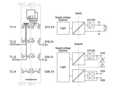 WAGO Vstup 750-666/000-004 Bezpečnostní binární/výstup, 4/2 kanály DC 24 V 10 A