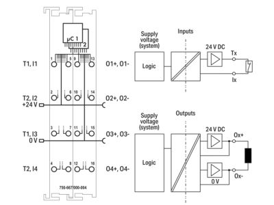WAGO Vstup 753-667/000-004 Bezpečnostní binární/výstup, 4/4 kanály DC 24 V 2 A