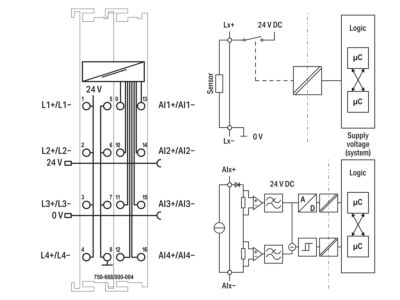 WAGO Vstup 753-668/000-004 Bezpečnostní analogový, 4 kanály 0/4–20 mA Rozdílový