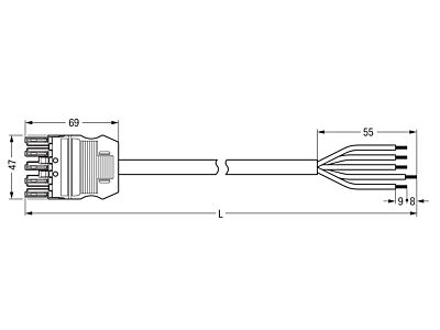 Konfekcionovaný s připojovacím kabelem; Dca; Zdířka / otevřený konec; 5pól.; Kód. I; H05Z1Z1-F 5G 1,5 mm²; 6 m; 1,50 mm²; Modrá