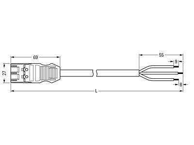 Konfekcionovaný s připojovacím kabelem; Dca; Zástrčka / otevřený konec; 3pól.; Kód. A; H05Z1Z1-F 3G 2,5 mm²; 4m; 2,50 mm²; Černá