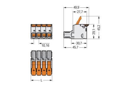 1vodičová pružinová svorkovnice; Páčka; Push-in CAGE CLAMP®; 16 mm²; Rozteč 10,16 mm; 3pól.; 100% ochrana proti chybnému zapojení; Postříbřené kontakty; Přímý potisk; 16,00 mm²; Světle šedá