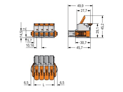 1vodičová pružinová svorkovnice; Páčka; Push-in CAGE CLAMP®; 16 mm²; Rozteč 10,16 mm; 4pól.; 100% ochrana proti chybnému zapojení; Boční blokovací západky; Postříbřené kontakty; Přímý potisk; 16,00 mm²; Světle šedá