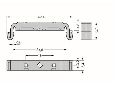 Montážní patka; Možnost naklapnutí na svorky se západkou; K našroubování na reléové moduly; Šířka 6,4 mm; Šedá