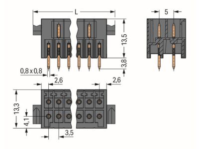 WAGO Konektor 713-1416/037-000 s pájecími piny THT, 2řadý Pájecí kontakt 0,8 × 0,8 mm Rovné provedení, černá