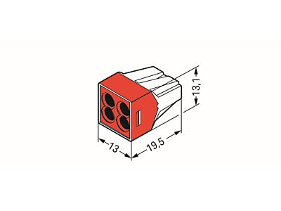 Instalační svorka PUSH WIRE®; Pro plné vodiče; Max. 4 mm²; 4 vodiče; Barva pouzdra hnědá – transparentní; Barva krytu červená; Max. teplota okolního prostředí 60 °C; 2,50 mm²; Vícebarevné