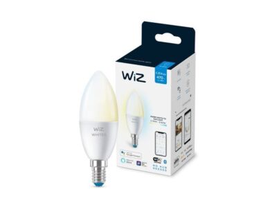 LED stmívatelná žárovka značky WiZ od společnosti Philips je osazena paticí E14 a baňkou ve tvaru svíčky s označením C37 Její maximální příkon činí 1 x 4,9 W, který je adekvátní náhradou klasické 40W žárovky. Svítivost dosahuje až 470 lumenů. Tato žárovka je vybavena funkcí Tunable White, kdy je možné regulovat její teplotu chromatičnosti od 2700K (teplá žlutá barva) do 6500K (studená modrá barva). K jejímu ovládání Vám stačí pouze Wi-Fi připojení či technologie Bluetooth. Můžete si nastavit plán zapnutí a vypnutí světel podle Vašich denních či týdenních rutin a mít tak vzdálený přístup ke svým světlům, i když jste mimo domov. Celkové rozměry žárovky činí 11,6 x 3,9 cm. Je určena do interiéru s krytím IP20. Její životnost dosahuje 15 000 hodin při 50 000 sepnutích. Index podání barev je roven hodnotě 90. Žárovka je určena k napájení ze sítě na 220 - 240 V. Energetická hodnota odpovídá označení A+. Na zdroj se vztahuje záruka 2 roky.