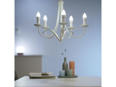 LED stmívatelná žárovka značky WiZ od společnosti Philips je osazena paticí E14 a baňkou ve tvaru svíčky s označením C37. Její maximální příkon činí 1 x 4,9 W, který je adekvátní náhradou klasické 40W žárovky. Svítivost dosahuje až 470 lumenů při teplotě chromatičnosti 2700K (teplá žlutá barva). K jejímu ovládání Vám stačí pouze Wi-Fi připojení či technologie Bluetooth. Můžete si nastavit plán zapnutí a vypnutí světel podle Vašich denních či týdenních rutin a mít tak vzdálený přístup ke svým světlům, i když jste mimo domov. Celkové rozměry žárovky činí 11,6 x 3,9 cm. Je určena do interiéru s krytím IP20. Její životnost dosahuje 15 000 hodin při 50 000 sepnutích. Index podání barev je roven hodnotě 90. Žárovka je určena k napájení ze sítě na 220 - 240 V. Energetická hodnota odpovídá označení A+. Na zdroj se vztahuje záruka 2 roky.