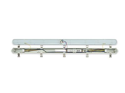 L1500 mm, Polykarbonát, Šedá, Napájecí zdroj (zapnuto/vypnuto), All-in, Multi Lumen, 4100 lm, 6800 lm, 53 W, 30 W, 146 lm/W, 135 lm/W, 4000 K, (0.38,0.38) SDCM≤5, Symetrická, Opálové provedení, Polykarbonát, IP65 | Ochrana proti proniknutí prachu, ochrana proti tryskající vodě, IK08 | 5 J odolná proti vandalismu, Bezpečnostní třída I, Třípólový zasunovací konektor, Průchozí vedení, 1fáze