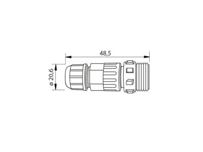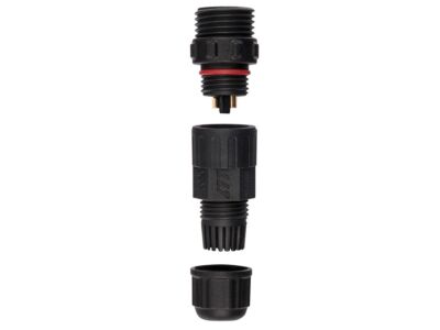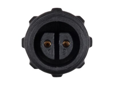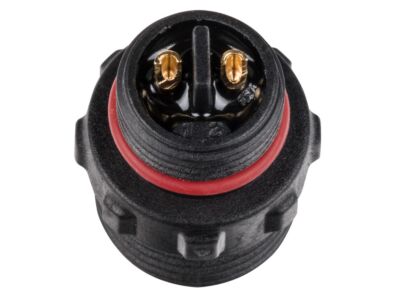Zásuvka bez převlečné matice, IP67, pájecí, pozlacené kontakty, M16, 2piny - například pro napájení podzemních svítidel Graund. Průřez připájitelného kabelu max. 1,5mm², průměr kabelu 5,5-7,5mm, max. 15A/250V. Rozměry: 48,5x20,6mm.