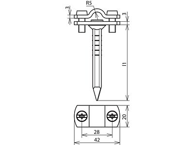Držák vedení s příložkou na dva šrouby a kolíkem, pro kruhová a pásková vedení. Provedení se čtyřhranným kolíkem.